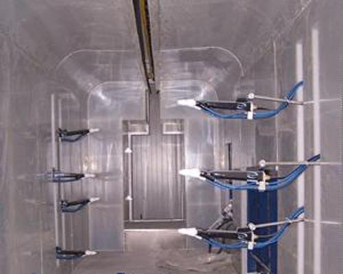 自動化噴涂設備,它解決了現(xiàn)有施工人員控制噴涂機進行噴涂存在勞動強度大、效率低、人數(shù)多,涂層質量不穩(wěn)定,均勻性差,浪費涂料等的問題。我們?nèi)鸹O計制造的自動化噴涂設備,包括能夠在地面上行駛的機動車和懸掛在機動車尾部的自動化橫移噴涂裝置,在機動車上設有控制機動車縱向勻速移動和控制自動化橫移噴涂裝置橫向噴涂的控制系統(tǒng)。使用該設備能顯著減少用工人數(shù)、噴涂效率高;噴涂質量穩(wěn)定均勻性好。