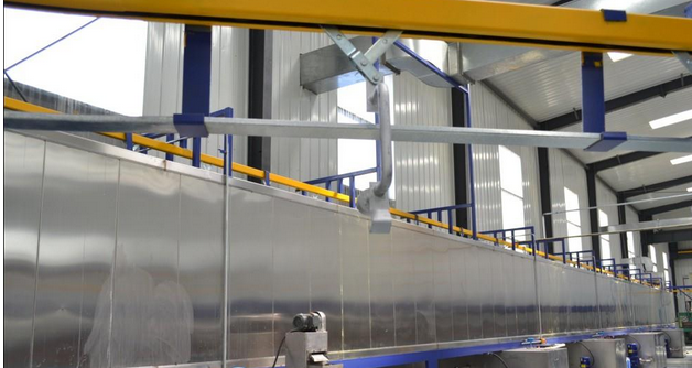 3. 噴淋式前處理設(shè)備組成:一般由棚體、槽體、排風(fēng)系統(tǒng)、泵及噴淋系統(tǒng)、送風(fēng)系統(tǒng)、懸鏈保護(hù)裝置、油水分離裝置、熱交換系統(tǒng)、除渣系統(tǒng)、酸洗系統(tǒng)、純水發(fā)生系統(tǒng)、溫控系統(tǒng)、電控系統(tǒng)等組成;